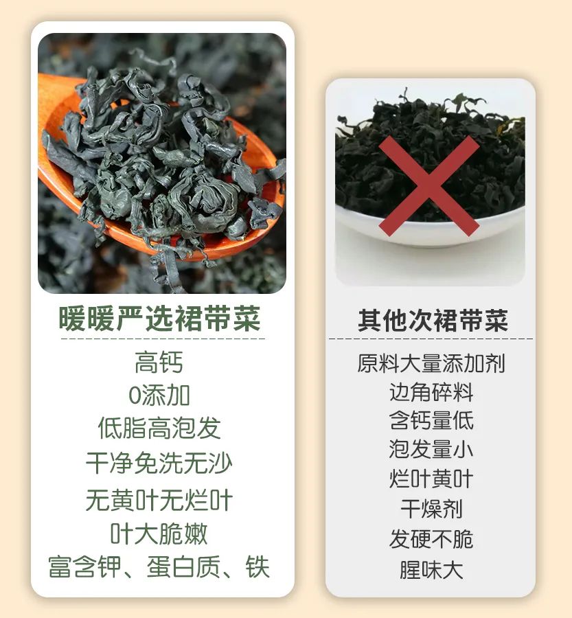 大量保留裙带菜的原汁原味+营养价值!层层考验下来,才是暖暖想要的好食材!无添加,干净无沙又免洗,暖粉们都可放心吃!