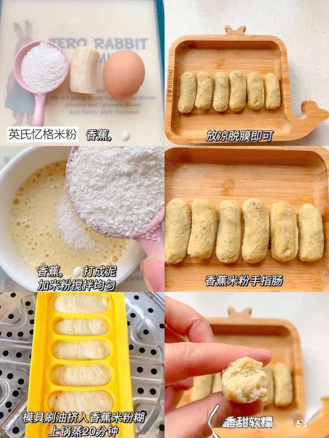 食材:香蕉一段,米粉20克, 一个鸡蛋