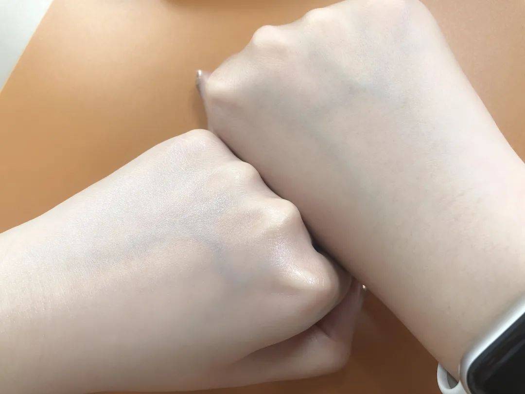 涂抹均匀后,肌肤还水水润润的,有亮亮的光泽感,有自然的润色效果。