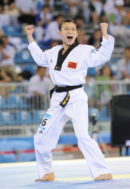 以击破为测试功力的手段,跆拳道在向外推广时,大多是以这种击破的方式向人们展示其威猛无比的功夫,这种方法是用拳、掌或脚分别击碎木板、砖瓦,以此检验和测试练习者的功力程度。这种独特的方法现已成为跆拳道训练、晋级升级、表演比赛的一个主要内容。强调气势,发生扬威,论品势还是竞技跆拳道,都要求在气势上给人以威严,多以发出洪亮并带有威慑力的声音来显示自己的能力。尤其是在竞技跆拳道比赛中,双方练习者都会以规则允许的发声来提高自己的斗志,借以在气势上压倒对手,甚至在出击时配合击打效果使裁判得以认可,争取在心理上战胜对手。所以,跆拳道练习者都要进行专门的发声练习。