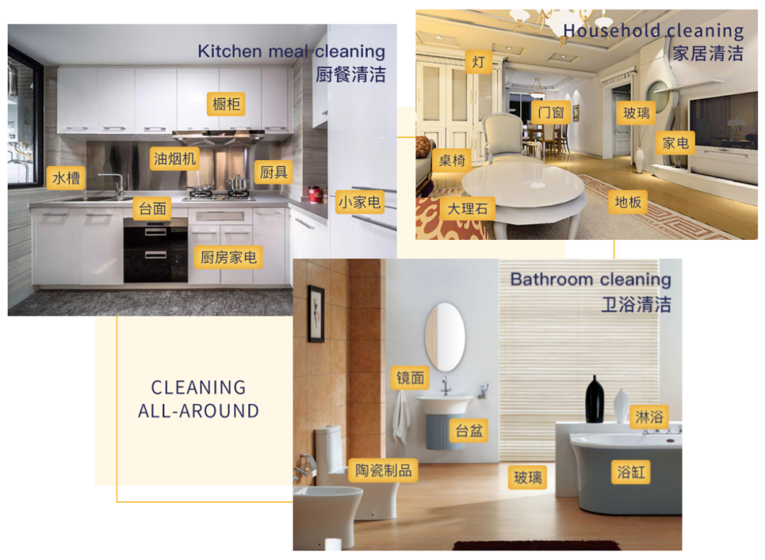 除了上面演示的灶台、油烟机、铁锅,它不挑材质,你能想到的,它都可以清洁。