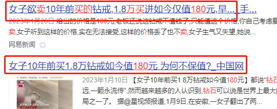 再加上1.8万买的钻戒回收价格不到180元这种爆料层出不穷,更是证明了它的不保值!