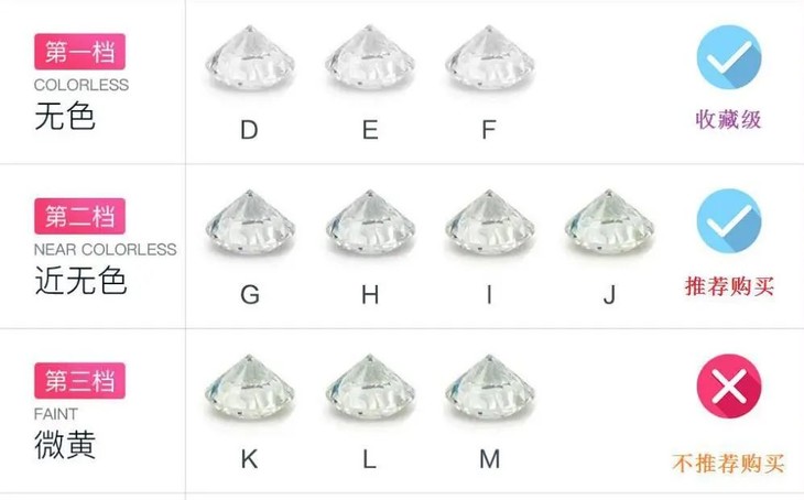 钻石颜色可分为D-Z,23个等级降序划分,其中“D”颜色等级最好!