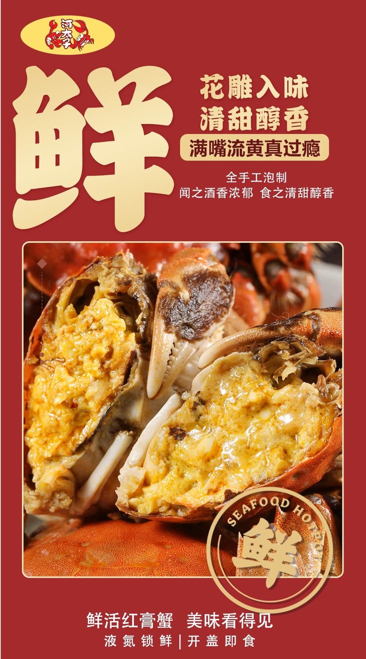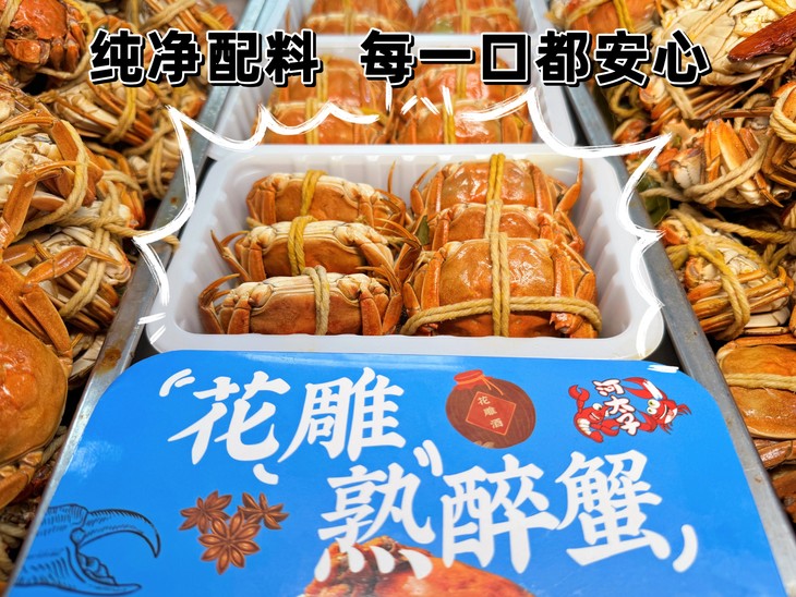 【夏季抢鲜上市~百万爆品花雕熟醉蟹&香辣大闸蟹来啦!】忙归忙,勿忘六月黄。”农历六月的童子蟹,抢“鲜”上市,刚完成第三次蜕壳,壳薄肉嫩,此时捕捞、再加以时日制成美味醉蟹和香辣大闸蟹——半流动的蟹黄绵密软嫩,鲜甜甘美。
