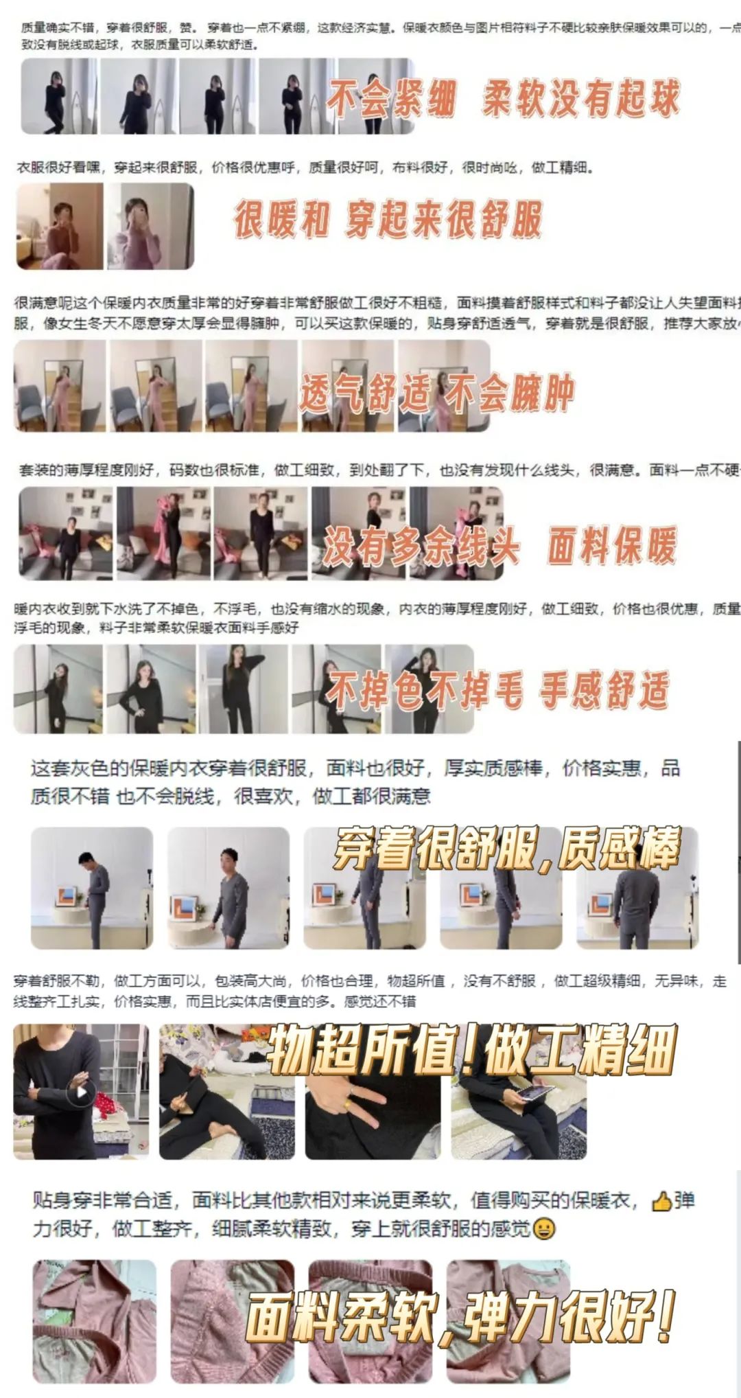 随手一截就是好评,被亲肤保暖、轻便柔软、上身舒适等刷屏了。