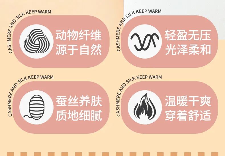 双面磨毛,双倍保暖。羊绒+蚕丝唤醒身体热能,蓄热锁温。