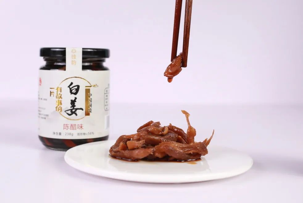 ②精选铜陵生姜(国家地理标志产品)+老陈醋,经过40天的浸泡发酵而成;