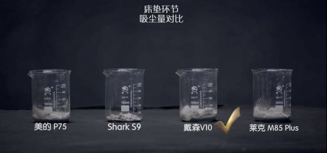 首先让我们看一下,吸尘量的对比,戴森毫无疑问是这个环节的冠军。