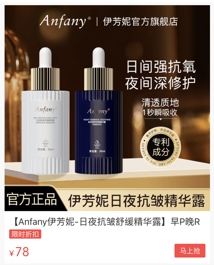 为了抵御皮肤衰老,Anfany日精华露直接提供完整的“逆龄”链。