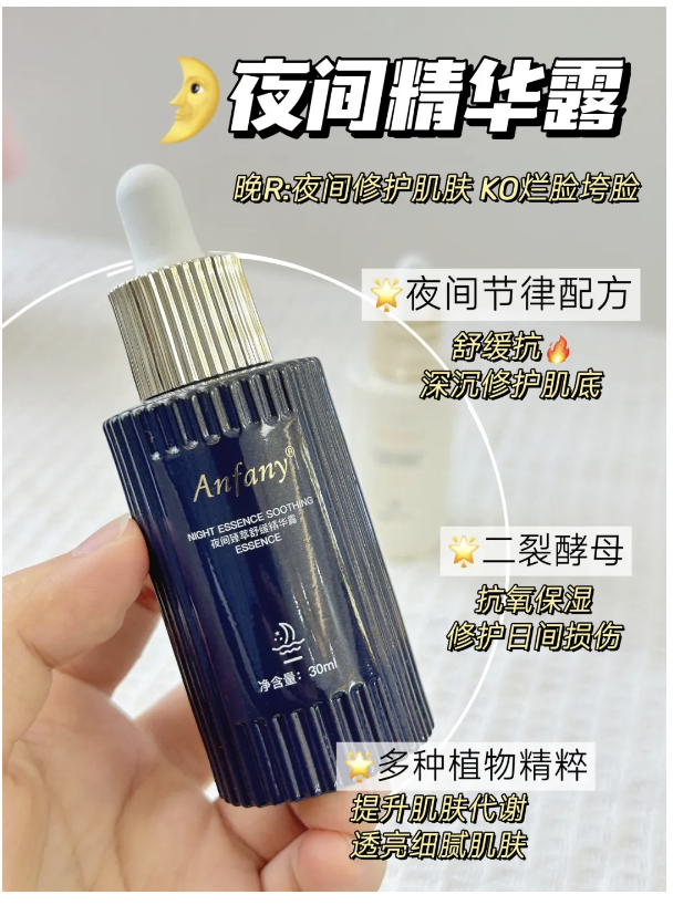 针对这些问题,Anfany夜间臻萃舒缓精华露给大家逐一击破。