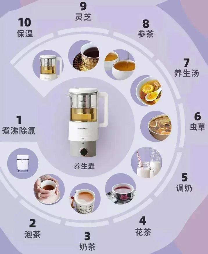 除此之外,它还有一个养生壶!煮参茶、花茶、养生汤…用起来简直不要太方便!