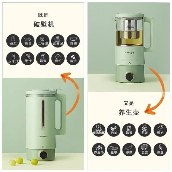 相比普通的破壁机,这款还增加了【养生壶功能】,采用了一机双杯设计。