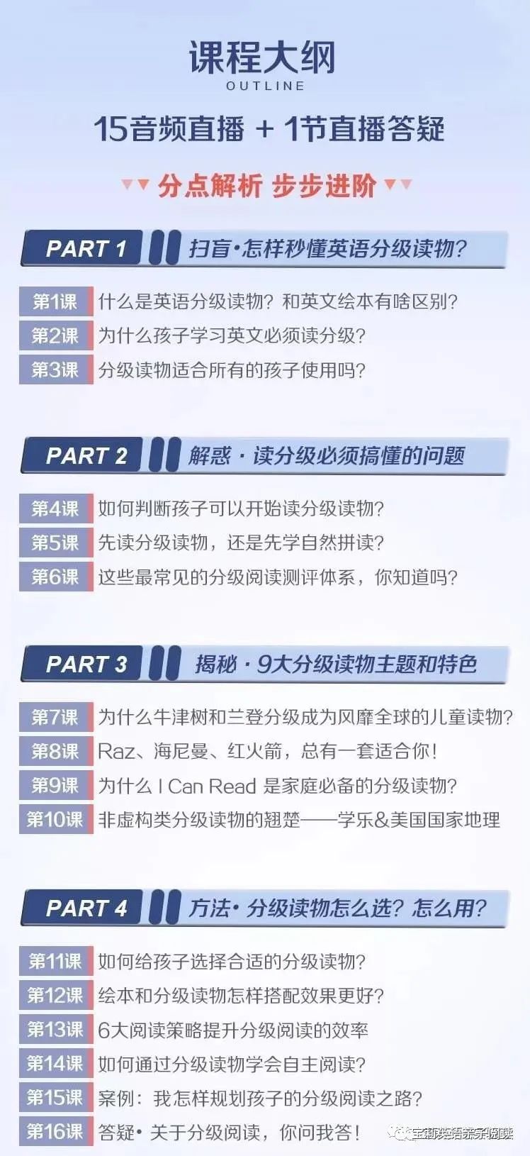 在《16讲轻松搞定分级阅读》的课上,我剖析了9大流行的英语分级读物,也分享了选择合适分级读物的标准。