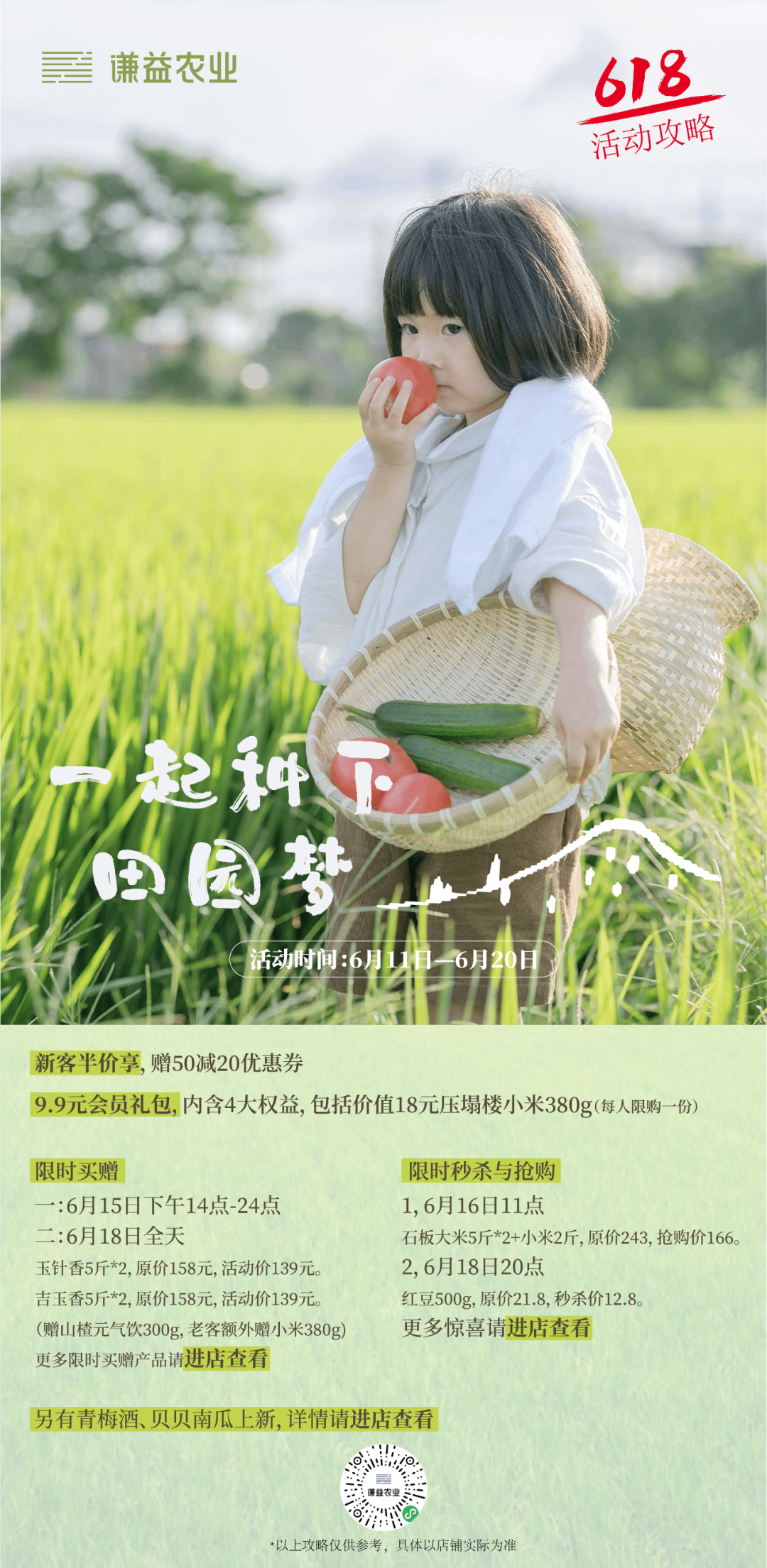 谦益特推出“认养一分田,实现田园梦,我的稻田我做主”的活动。
