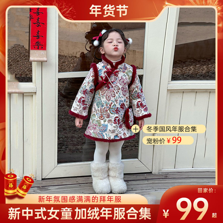 文案:宝宝的拜年服也太可爱了!红色好有过年氛围🔴毛茸茸锁边和小兔子一样可爱~夹棉加厚保暖有型,穿上去拜年红包收到手软