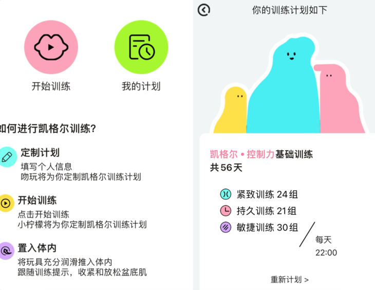 另外最特别的还是它的凯格尔运动系列的游戏。它可以为你量身定制你的凯格尔练习的目标和训练计划。