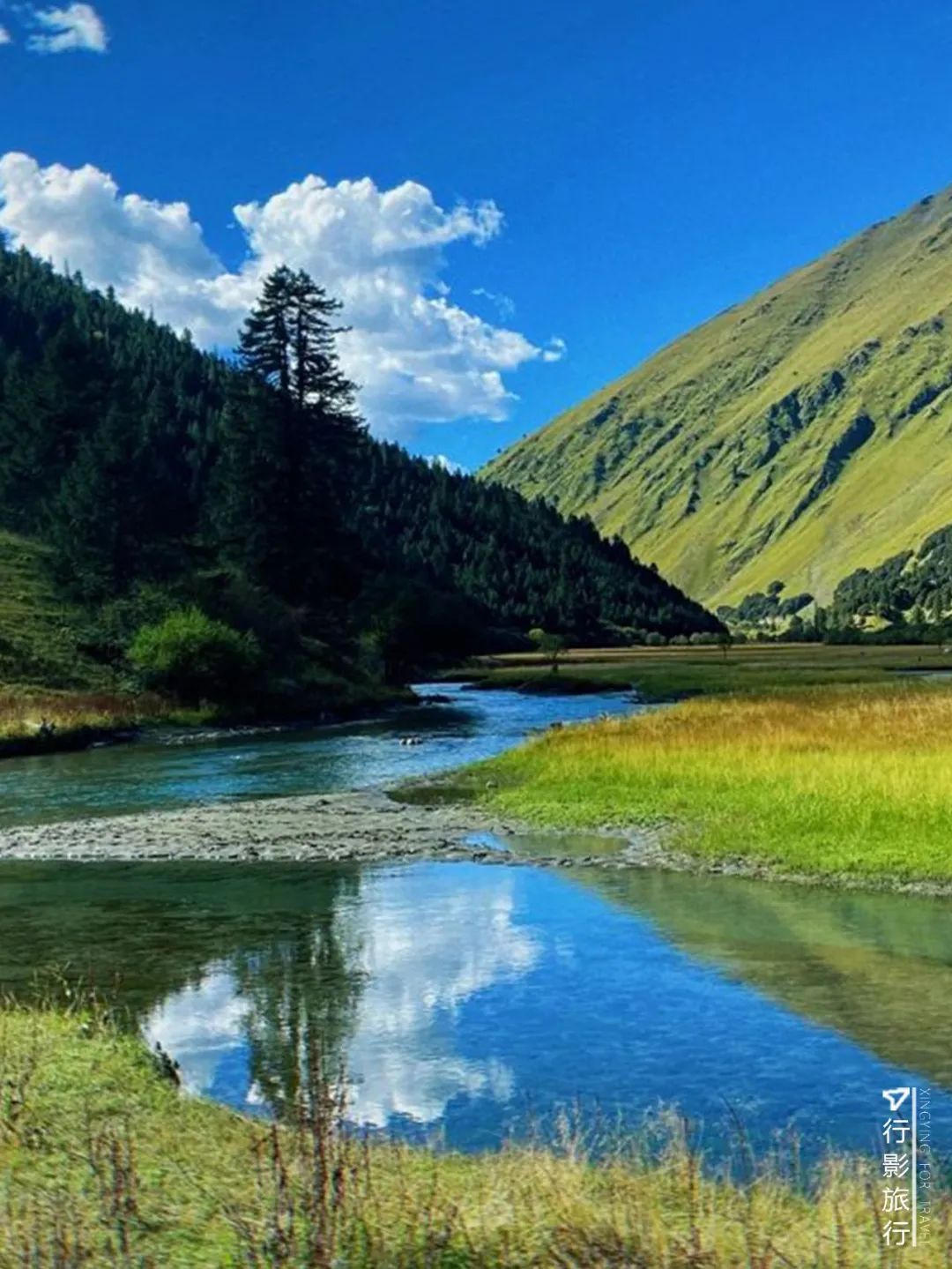 银恩日月潭集森林、峡谷、河流、湖泊、草甸、雪山于一身,和洛绒牛场相差无二。