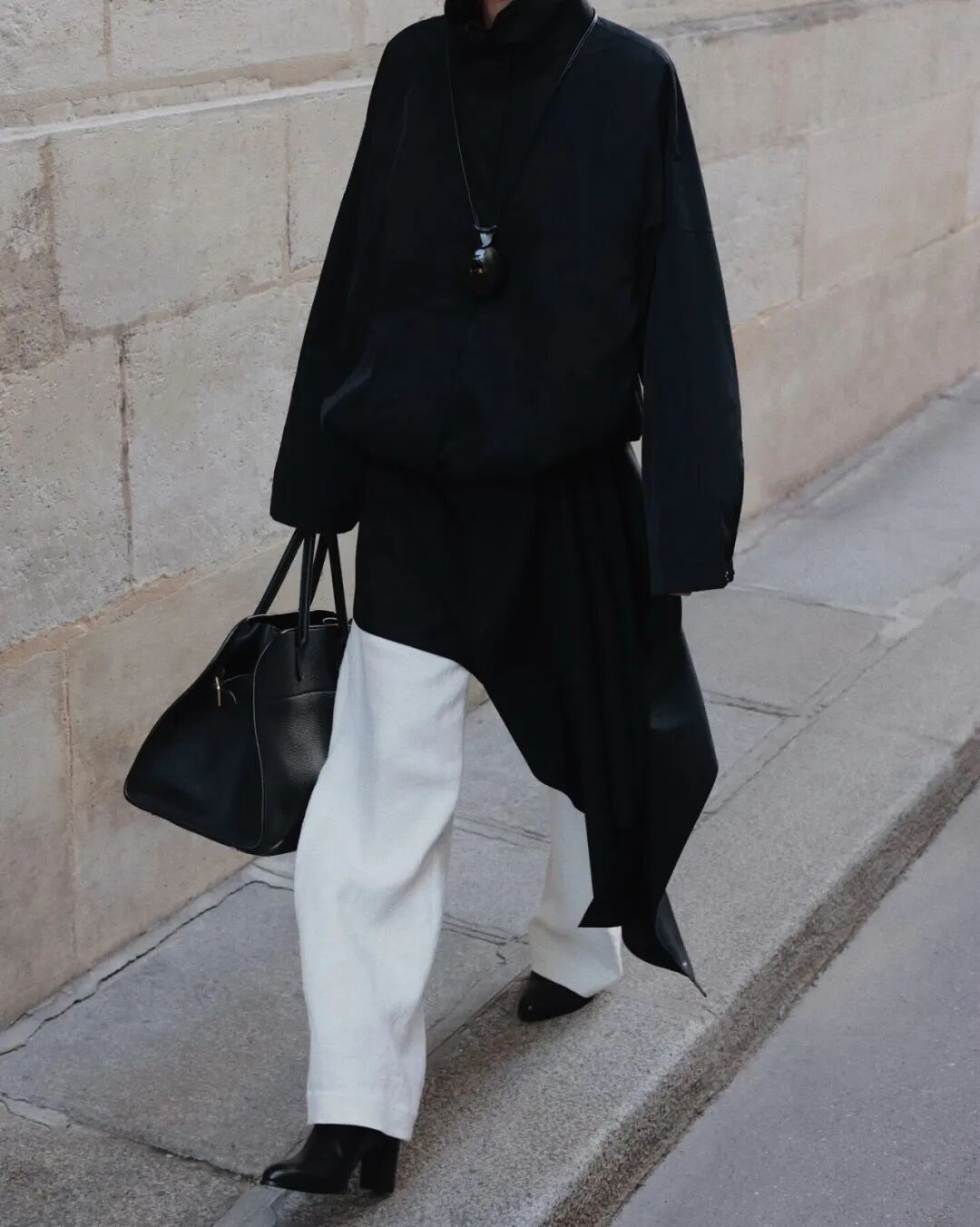 外套的选择上,艺术系穿搭更偏向线条干净、肩部有结构但不过分尖锐的款式。