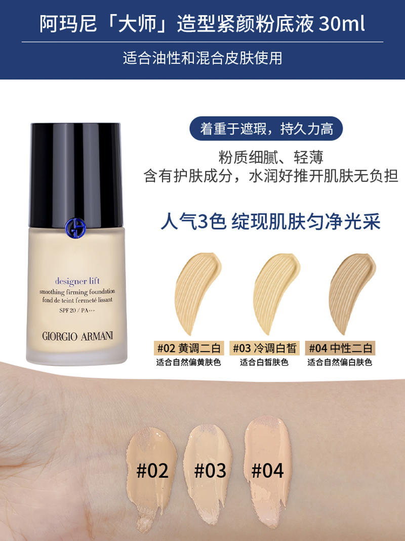 这次的阿玛尼色号专为亚洲肌肤设计,参考亚洲人普遍的肌肤颜色,小西选择了三大热门色号,下面就一起来看看具体的色号展示吧!