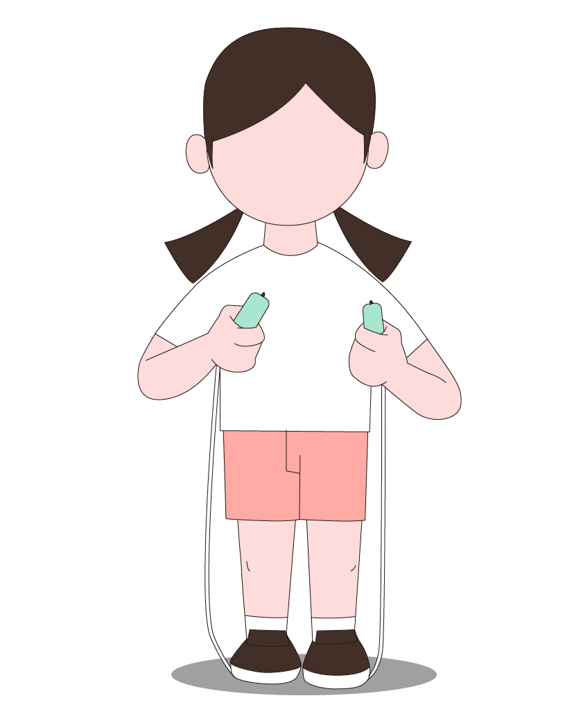如果是身高比较高、身材略微圆润或者协调性没那么好的同学,可以把跳绳的长度调得稍微长一点儿,可以较少卡绳的次数。但是绳子越长,速度就会越慢哦。