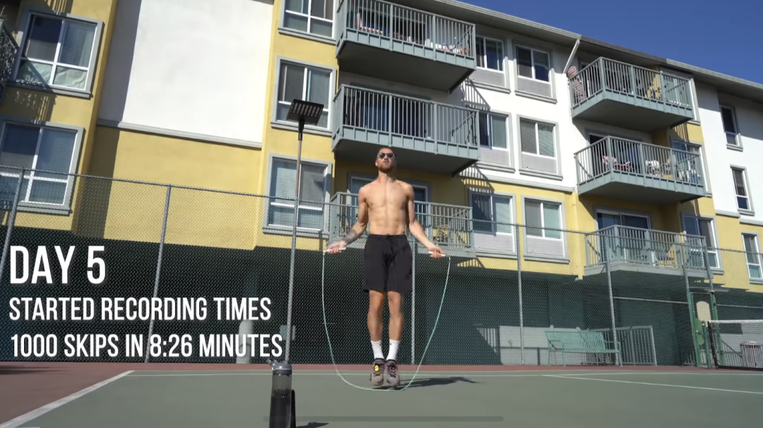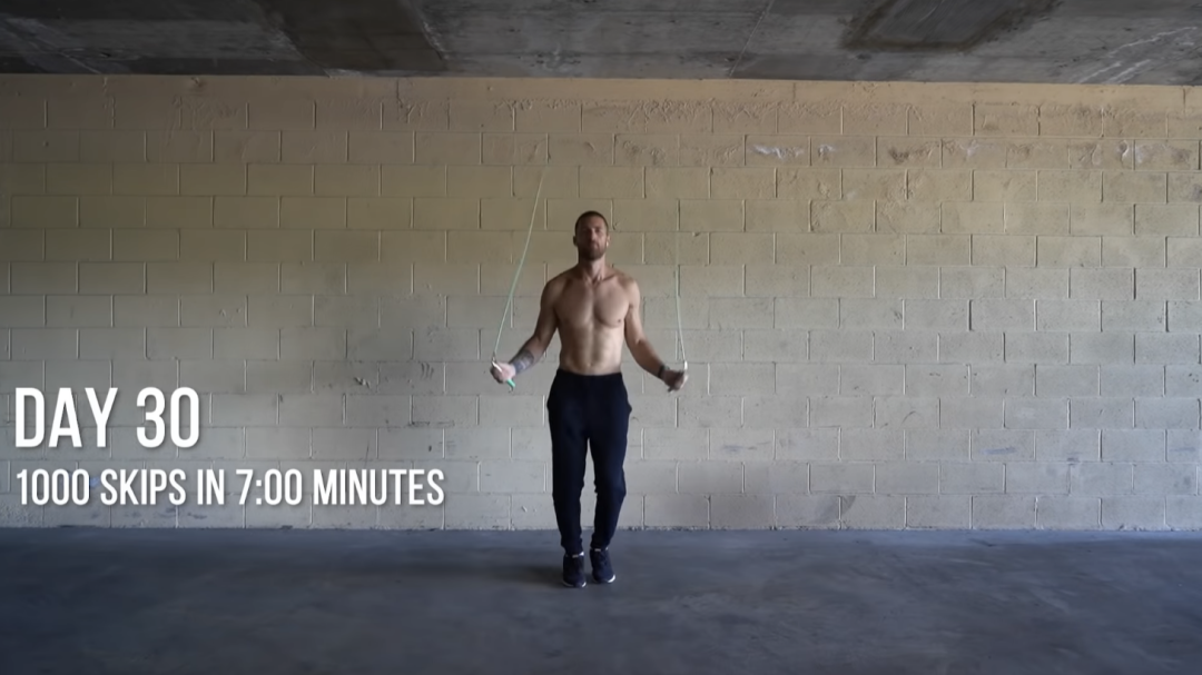 对于成年人来说,跳绳的速度要控制在每分钟最少150下,而且一次要跳足两分钟,此为一组。这个强度,我们还要连续完成15组。好消息是每组之间,我们可以停顿一分钟,作为休息调整时间。