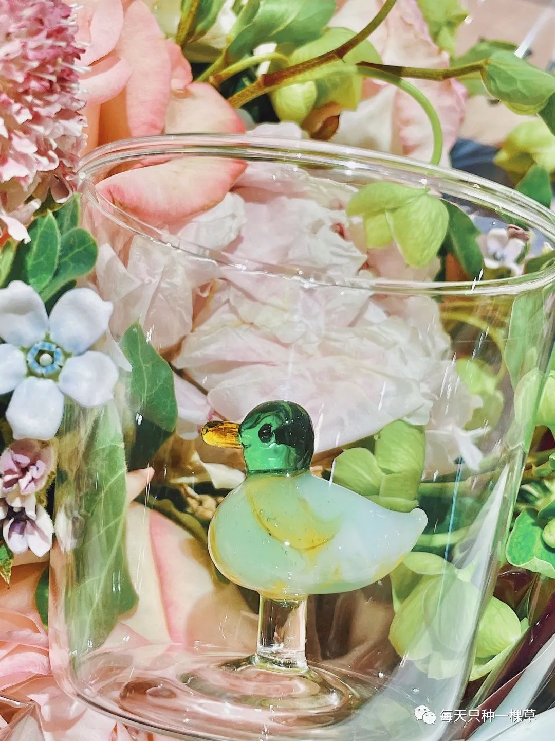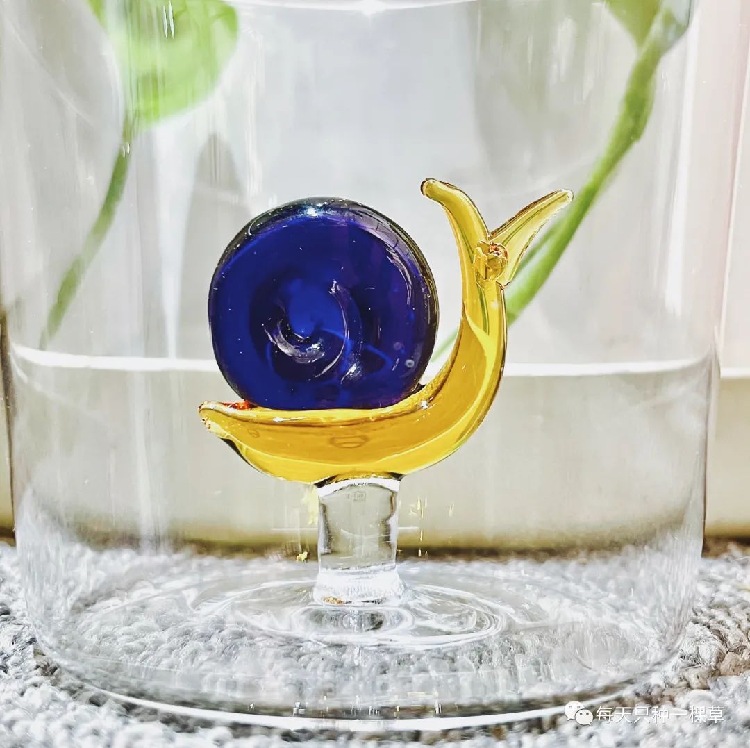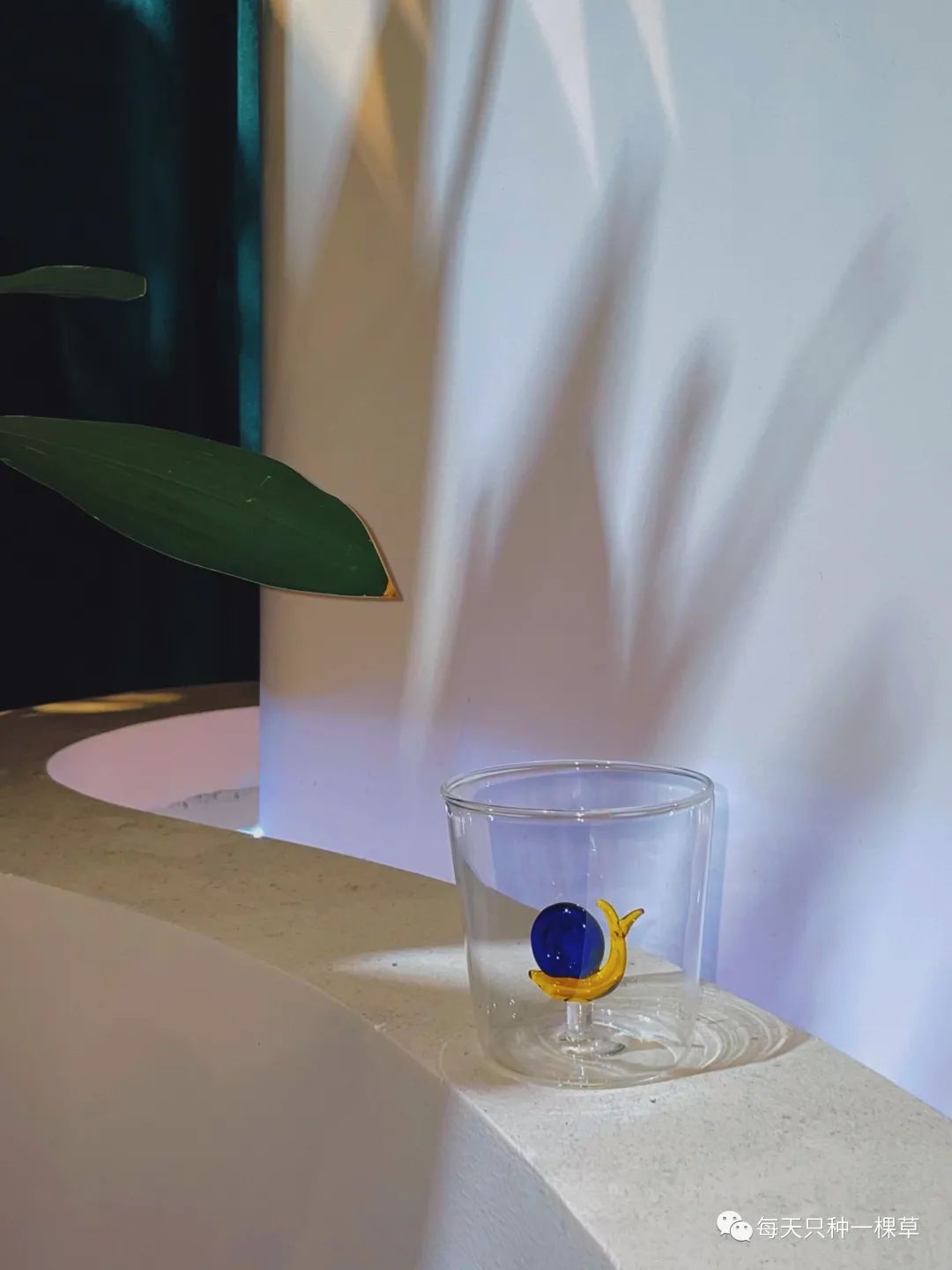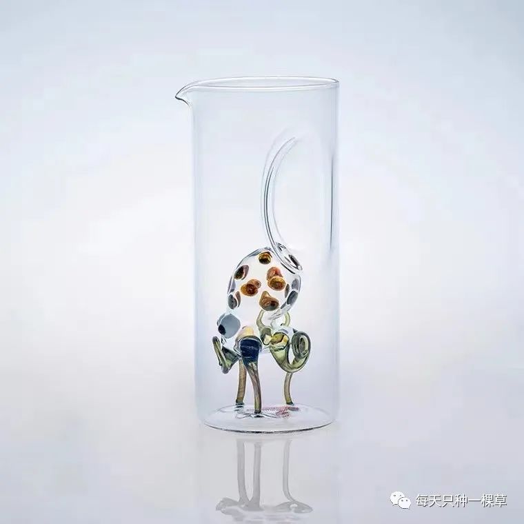 他擅长把动物和器具造型结合👇比如手柄做成啄木鸟、杯里吹制立体的章鱼、河豚