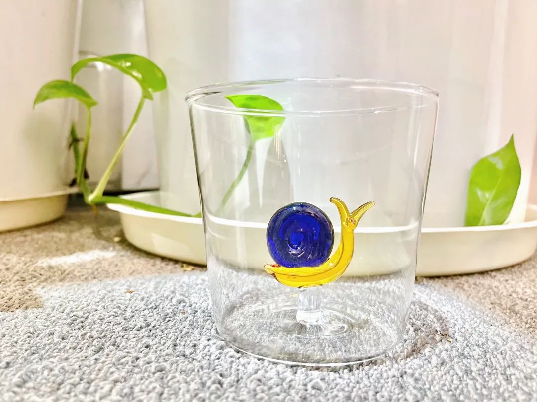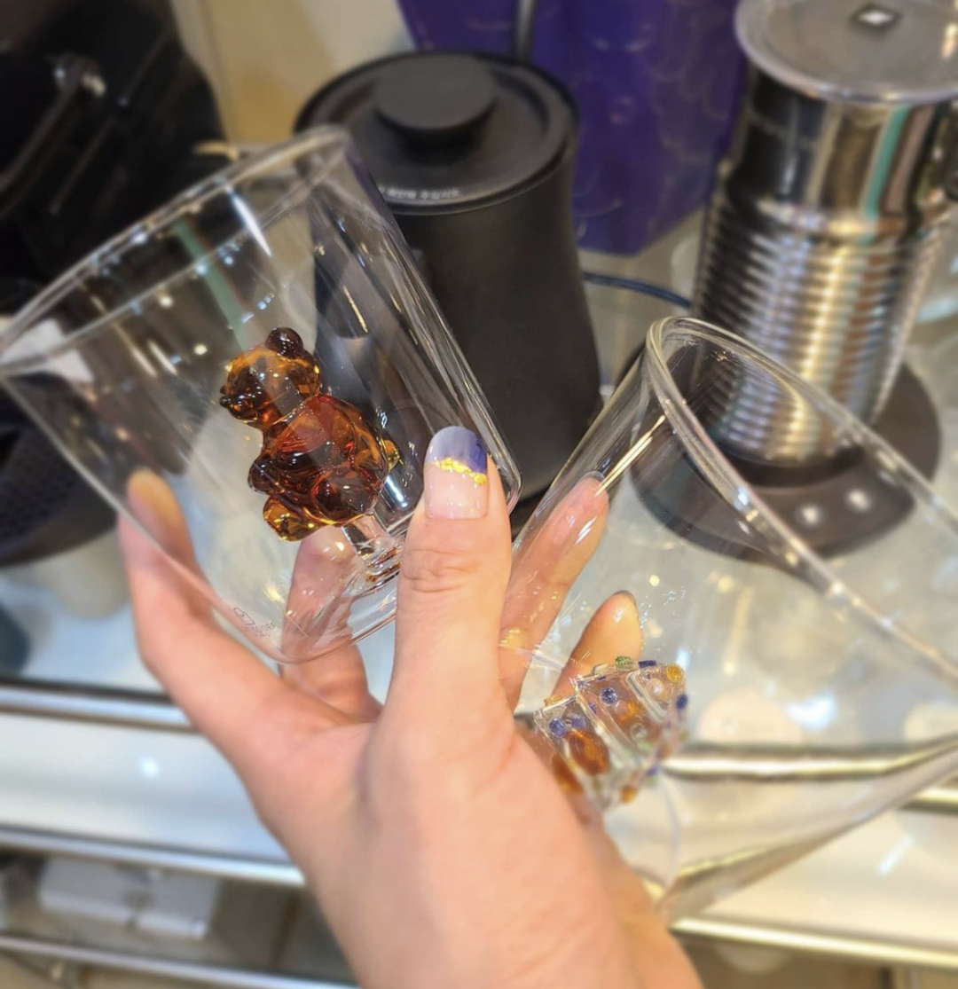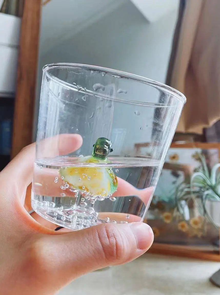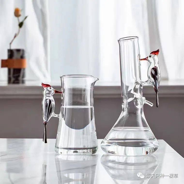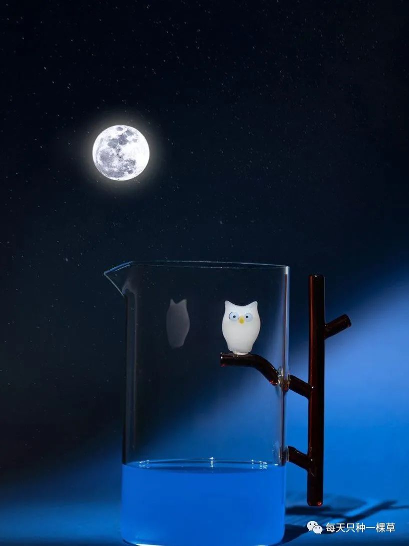 他擅长把动物和器具造型结合👇比如手柄做成啄木鸟、杯里吹制立体的章鱼、河豚