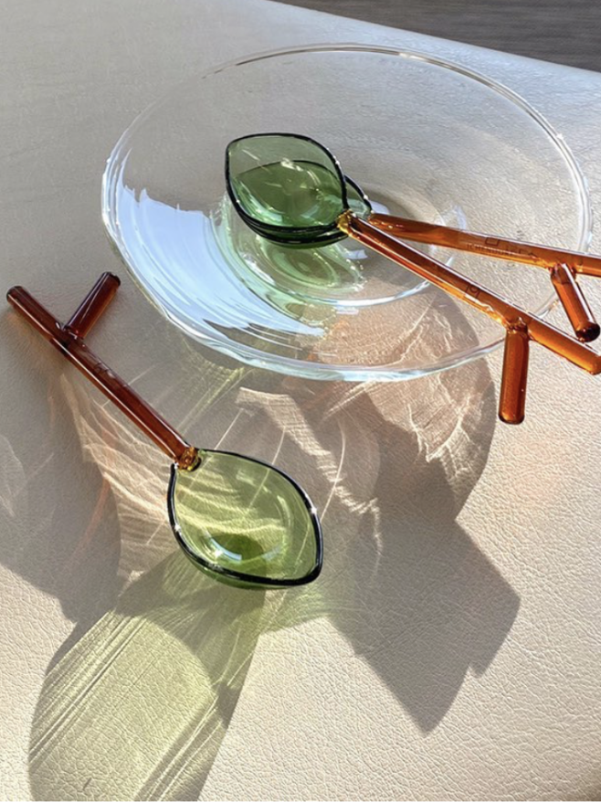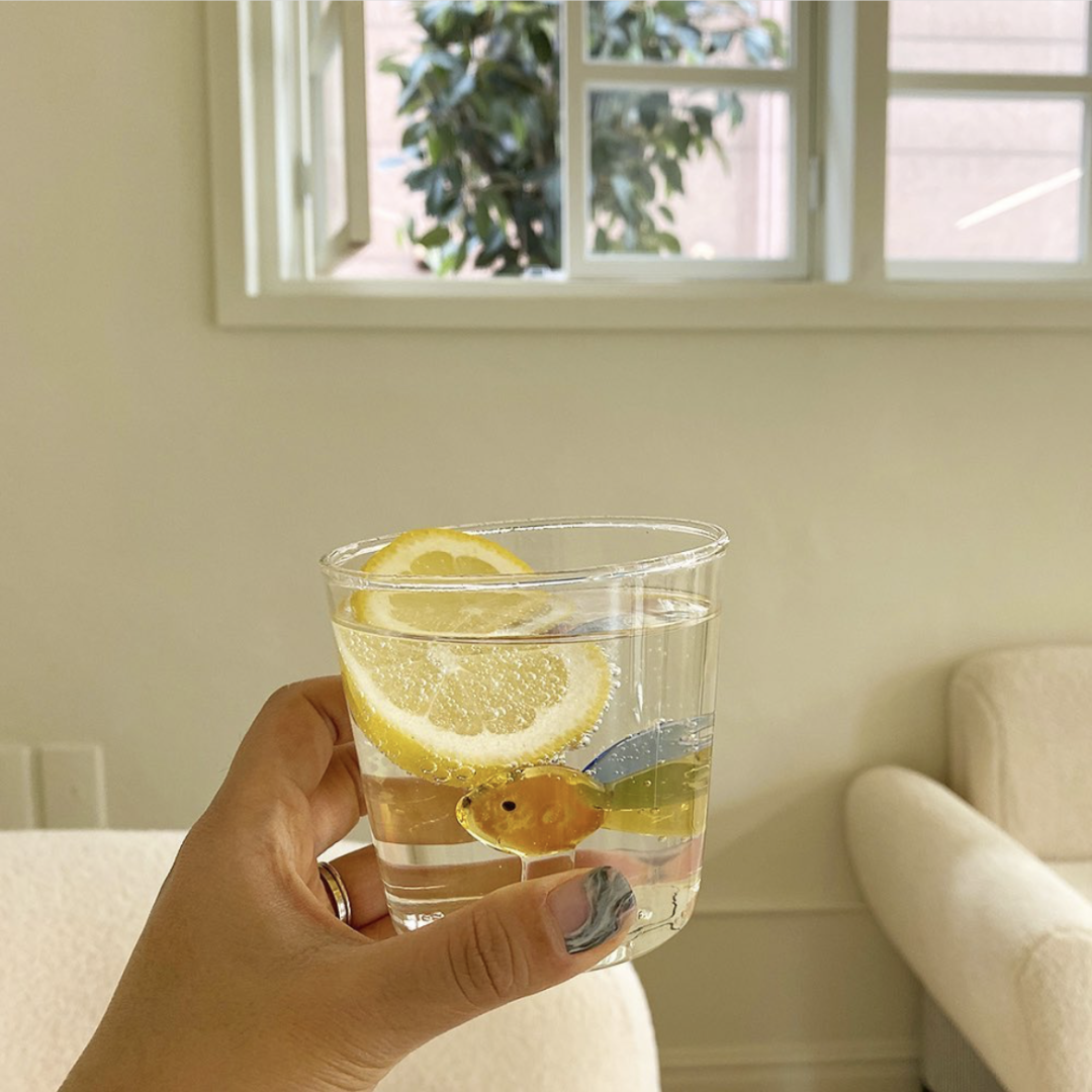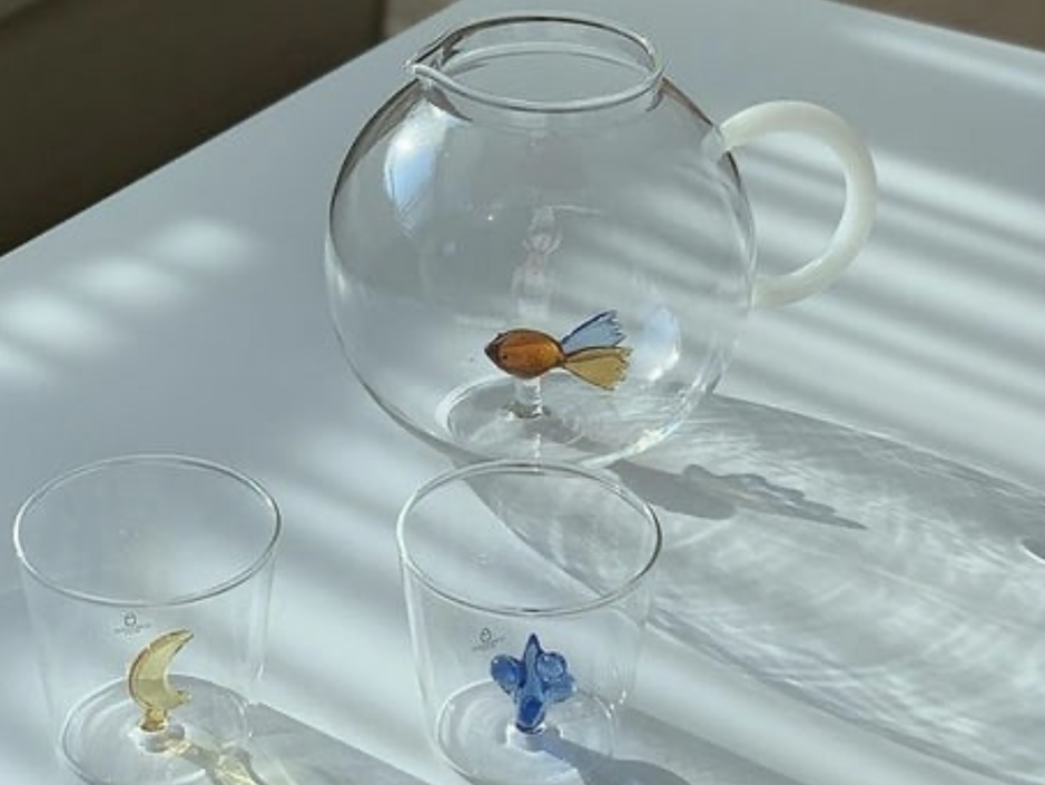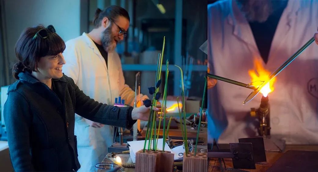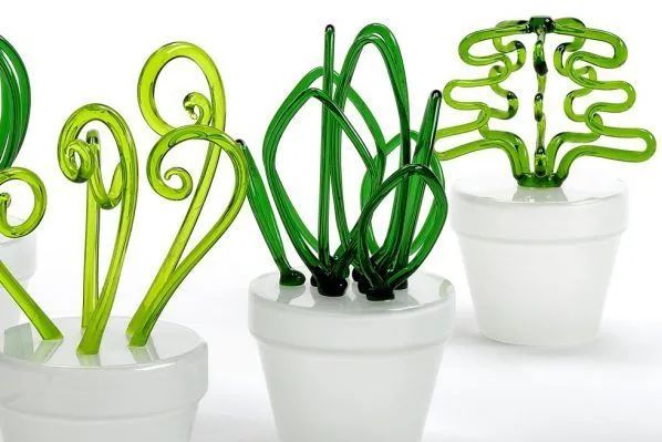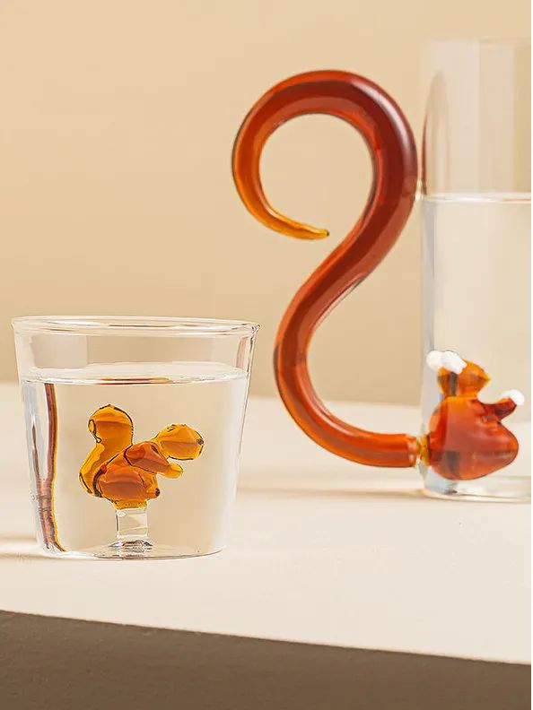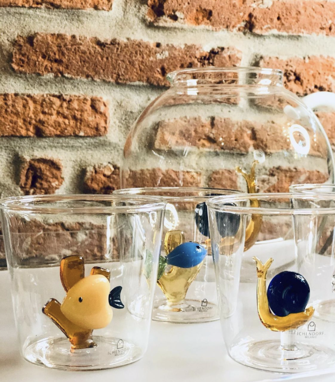 他擅长把动物和器具造型结合👇比如手柄做成啄木鸟、杯里吹制立体的章鱼、河豚