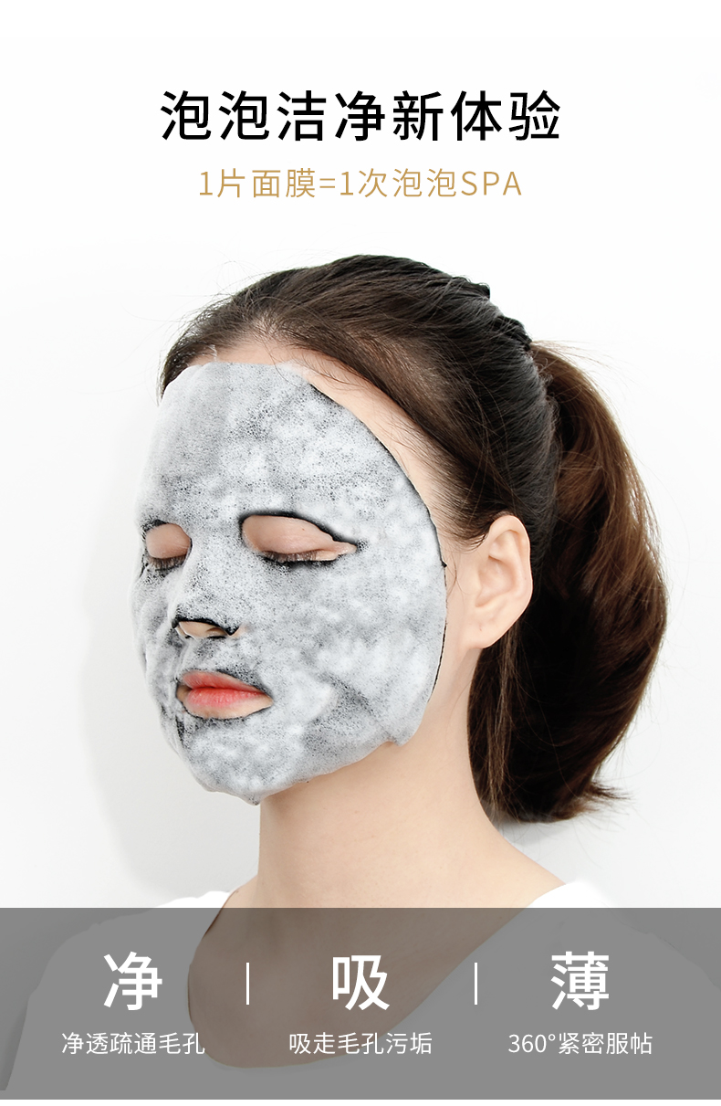 上脸敷面膜的时候就很好玩了,打开后快速敷上脸,就能感觉泡泡一点点增多,到最后连面膜布都看不到了洗完脸能感觉到毛孔干净了不少,再进行后续护肤。