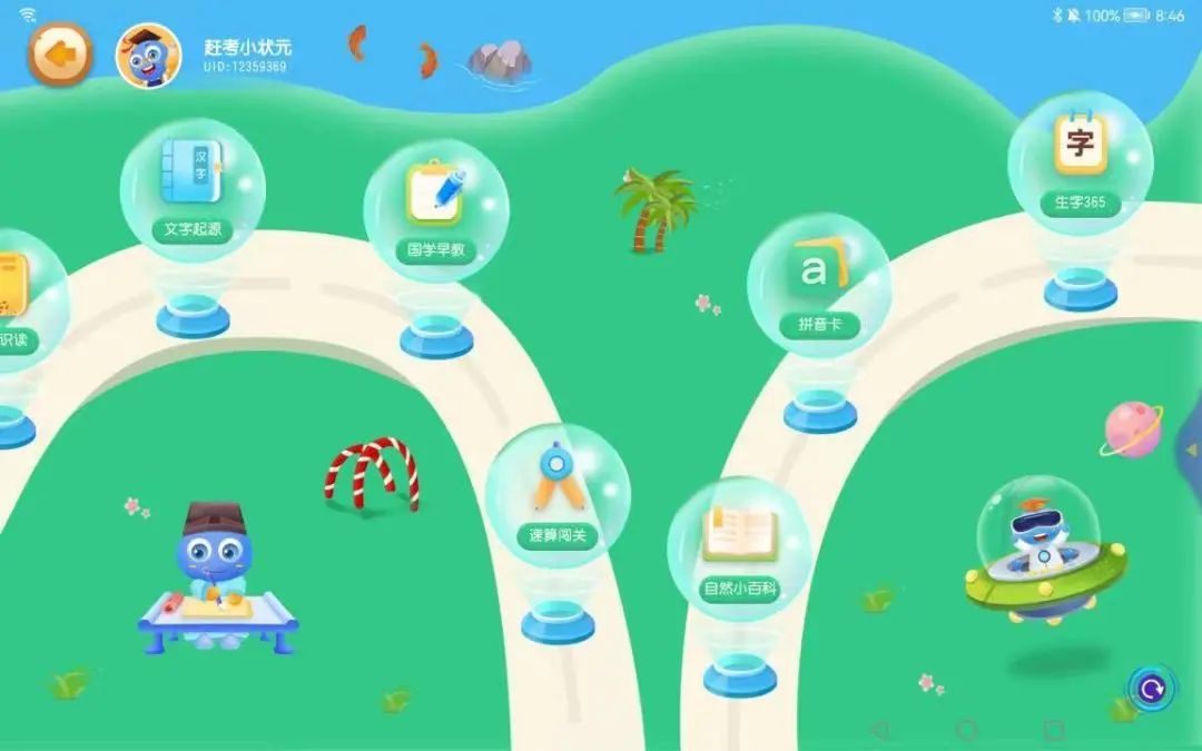文语小状元AI智能学习机从幼儿阶段开设语言文化素养的培养课程,家长们可以用【贝瓦爱学习】、【萌娃快乐学】、【多纳乐园】中的语言表达课程或原创故事,激发孩子对语文学习的兴趣;另外,还有【文字起源】、【绘本识读】、【国学早教】、【拼音卡】等学习版块,开发孩子的智力,优化语言表达能力和思辨能力,为以后的语文学习打牢扎实的基础。