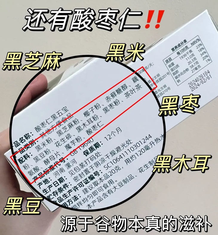 酸枣仁+5种黑色食材,配料干净