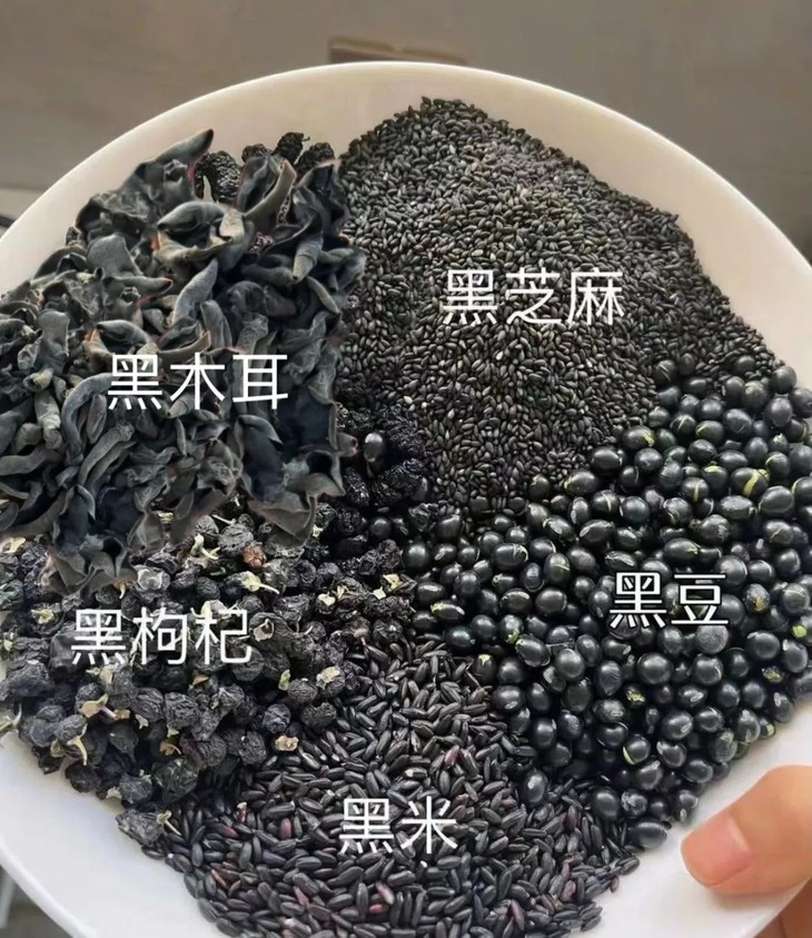大树伯伯集合了5种黑色食物:黑米、黑芝麻、黑豆、黑木耳、黑枣,以黑养黑