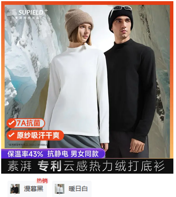 推荐理由:远红外发热,温倍暖细旦纤维面料,细腻蓬松,3秒升温!吸湿透气,耐穿抗造,无惧湿冷及水洗,不易起球,抗菌抗静电。