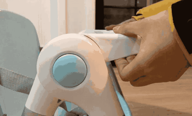 使用的时候,按住两边的圆形按钮、收起座椅餐盘,只需 3 步轻松折叠 / 打开。