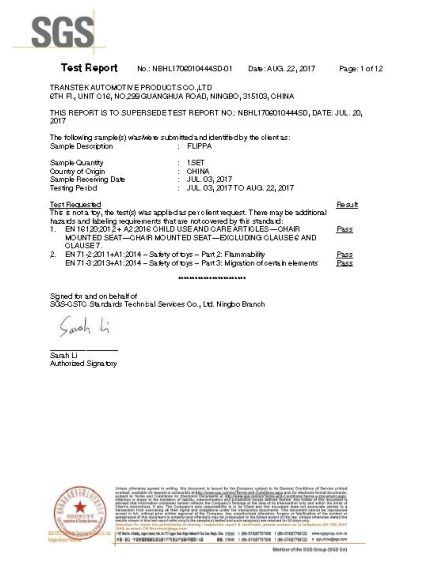 APRAMO FLIPPA®便携餐椅还通过了全新出台的欧洲餐椅法规EN16120权威认证,这是专门用于确保可以安装在椅子上的餐椅安全的。(大家可以安心使用)
