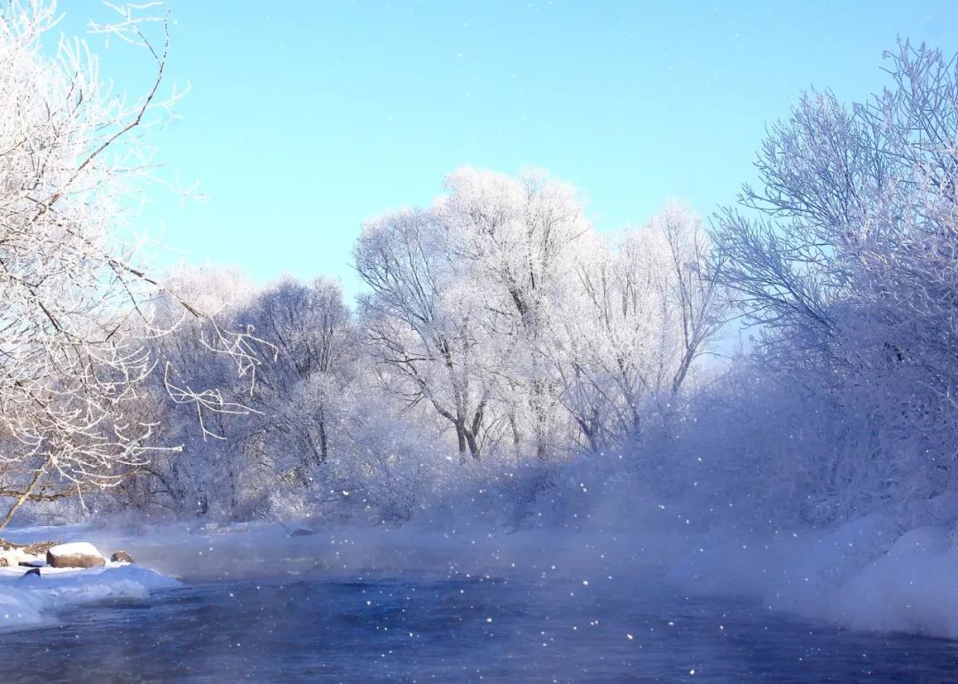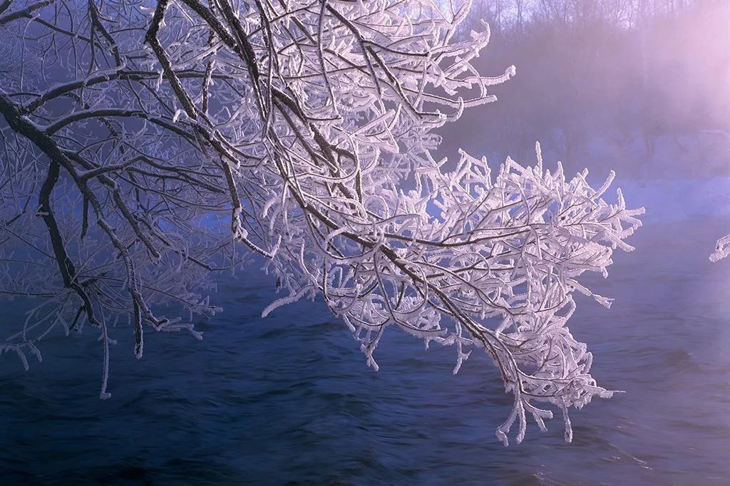 荡舟其上,随着河流的流向一路穿在雾凇凝华的丛林之中,一切仿若琉璃流转的光华,成就一段冰雪奇缘。
