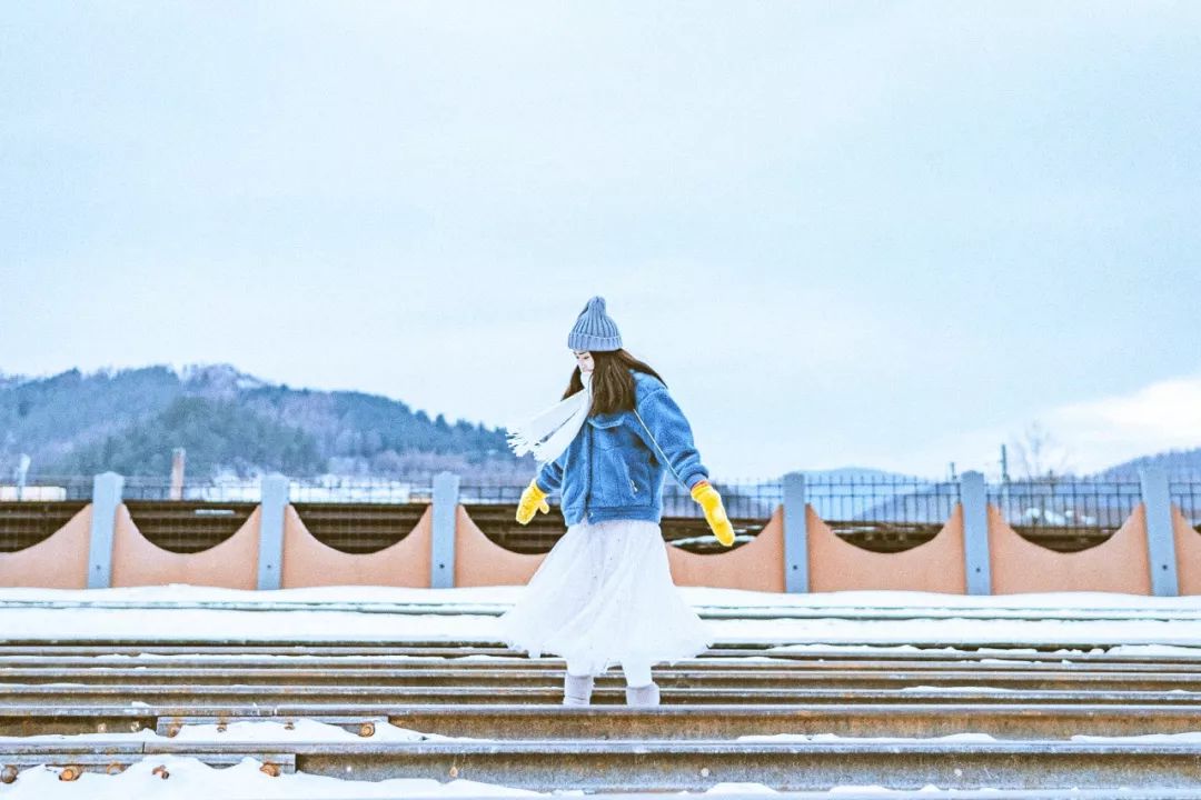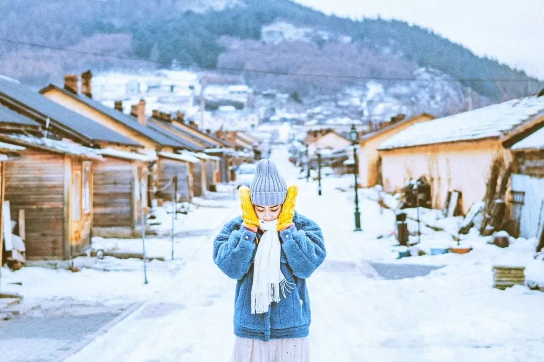 白雪覆盖村庄,暖黄色的小木屋错落在街道两旁,让人仿佛错身于《情书》的拍摄地日本小樽,每一帧都是日系风的纯净、唯美与浪漫。