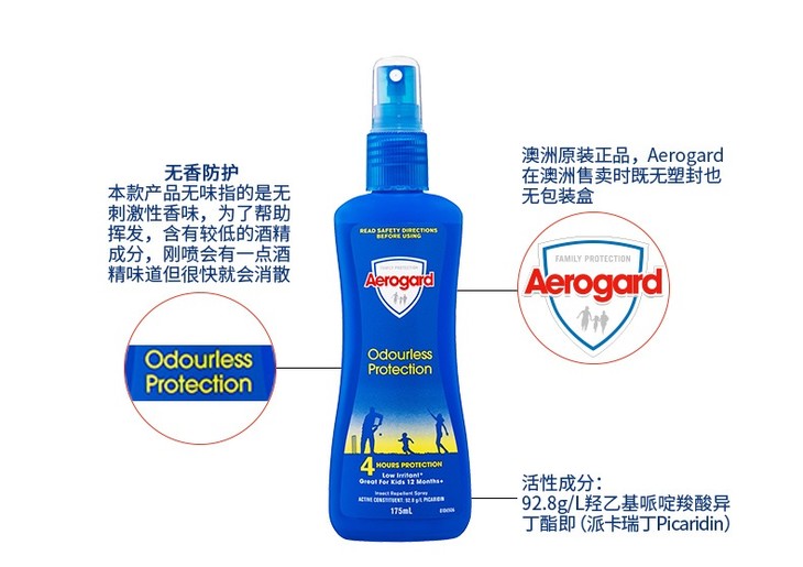 澳洲Aerogard喷雾驱蚊水蚊怕水175ml---爸爸去哪儿&黄磊🔥推的驱蚊神器无味,低刺激性。
