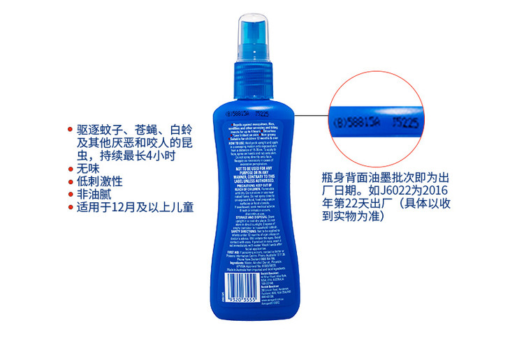 🌈防蚊,苍蝇和其他惹人厌及咬人的昆虫,长达6小时。❄️适合于全家远离蚊虫,适用于🌹12个月或以上儿童。☘️澳洲药房销售冠军👑,是一款极安全的防蚊畅销产品。