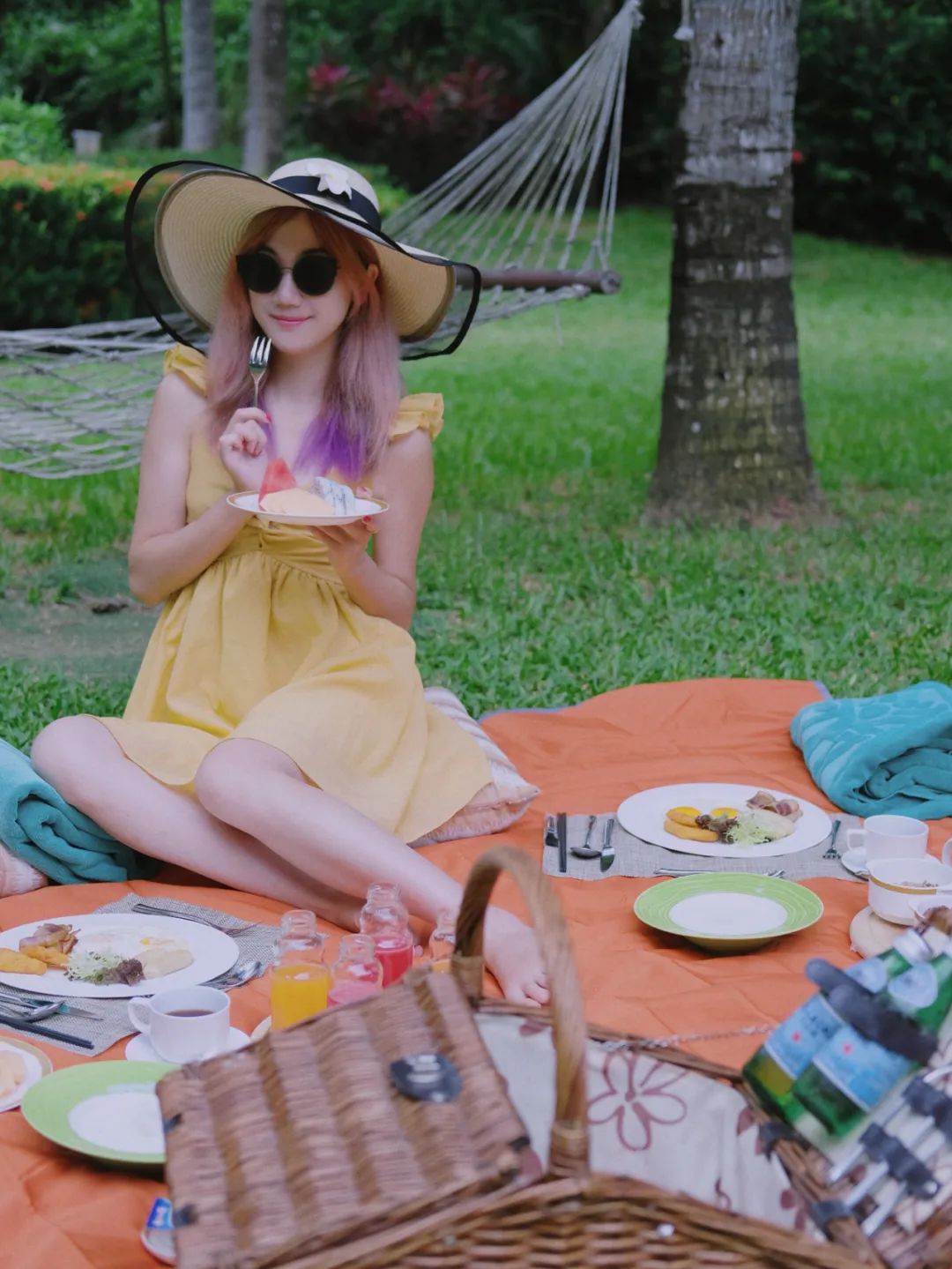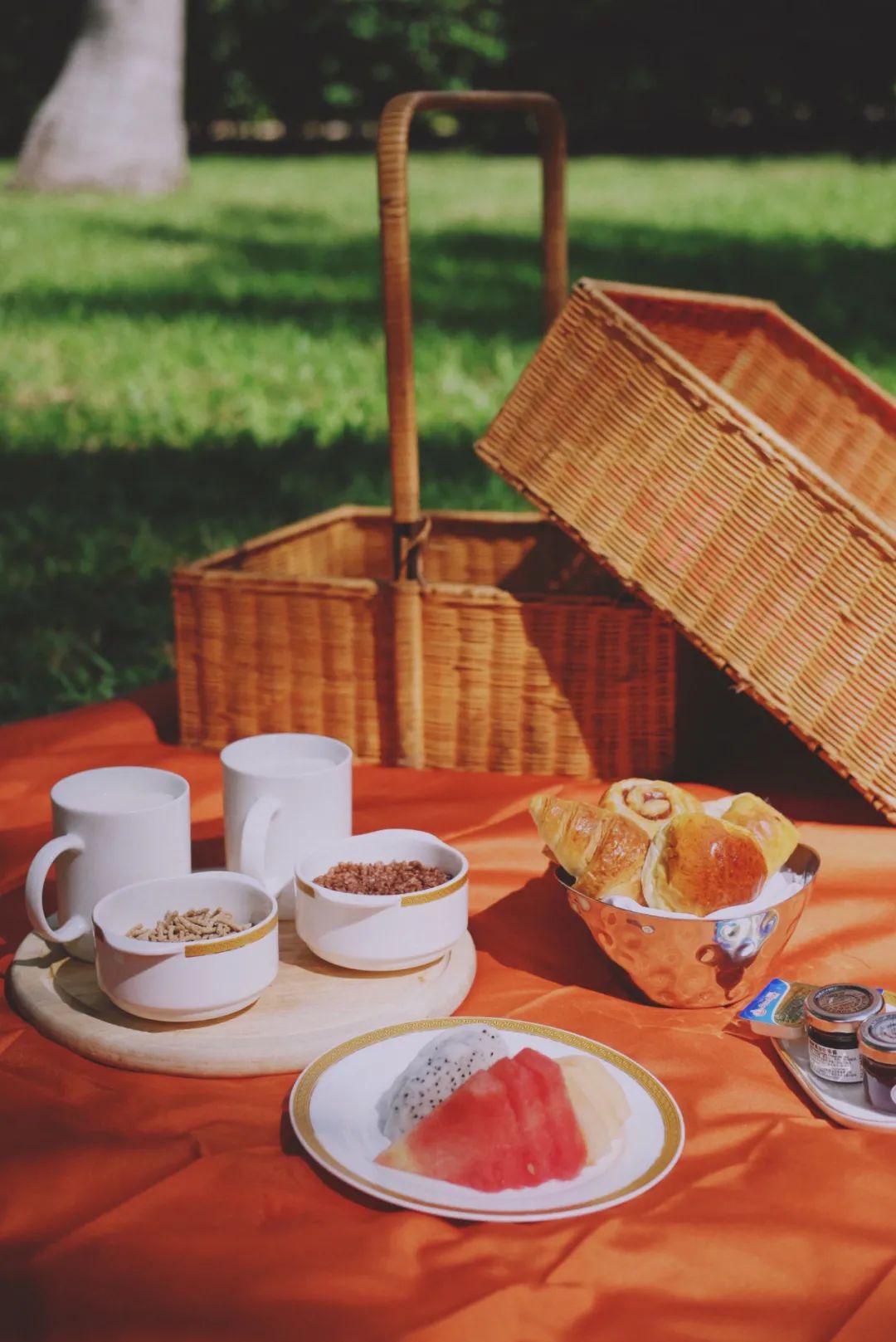 悦榕庄有漂浮早餐服务,But!最近流行野餐风,他又走在前列提供好吃又好拍的草坪早餐~