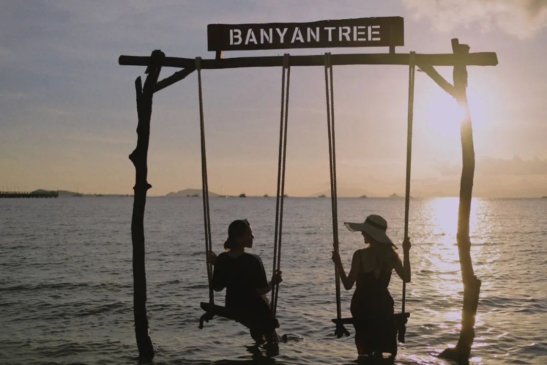 和夕阳最配的除了昂贵的晚宴,还有免费的海上秋千,草坪的大榕树下也有一个。晃啊晃,都很适合拍照哦。