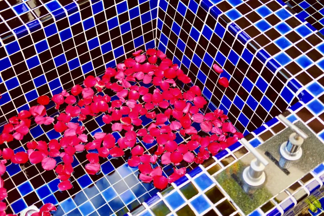 一进别墅,酒店君就看见早已备好的玫瑰花浴,开始幻想这是自己的蜜月之行了。