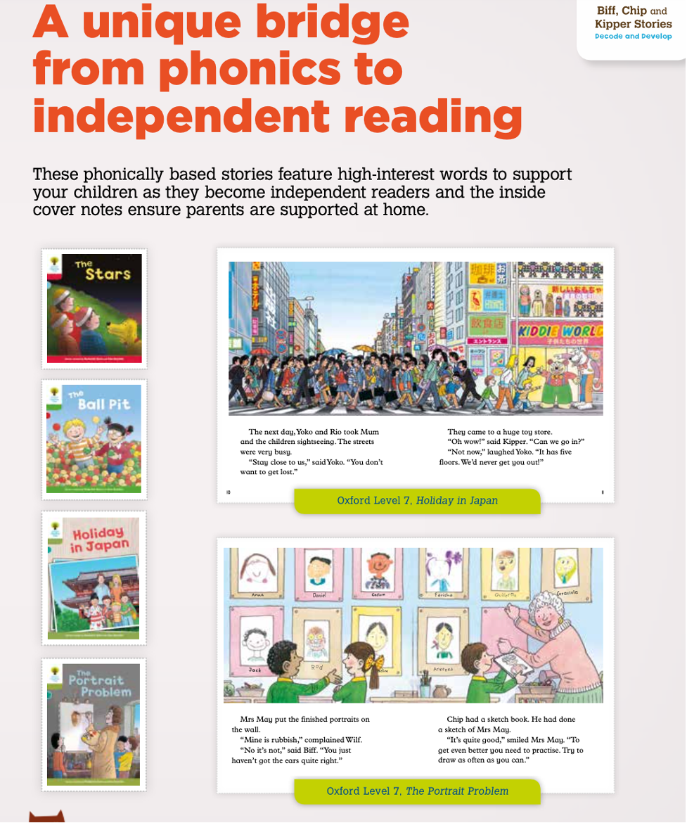 就拿 Floppy's Phonics Fiction & Non-Fiction 两个系列来说,就包含了自然拼读、拼读练习、科普读物三个元素。