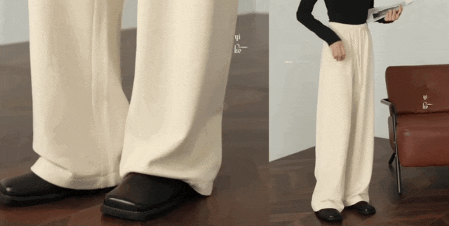 裤管还会自然形成一道道弧度,显瘦效果翻倍