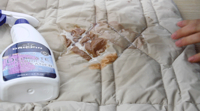2、使用前请先在不起眼的地方试用,确认衣服是否褪色