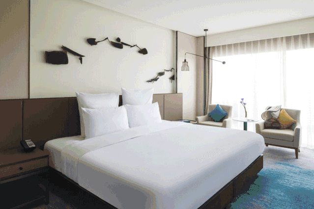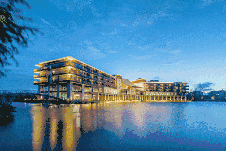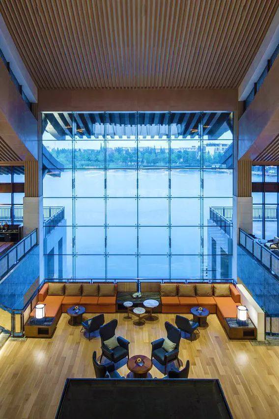 这里每个细微之处都设计得独到妙笔,每一帧窗外的景色都旖旎生花,天鹅湖的柔美融合湿地风光,与千年古镇风情遥相呼应。
