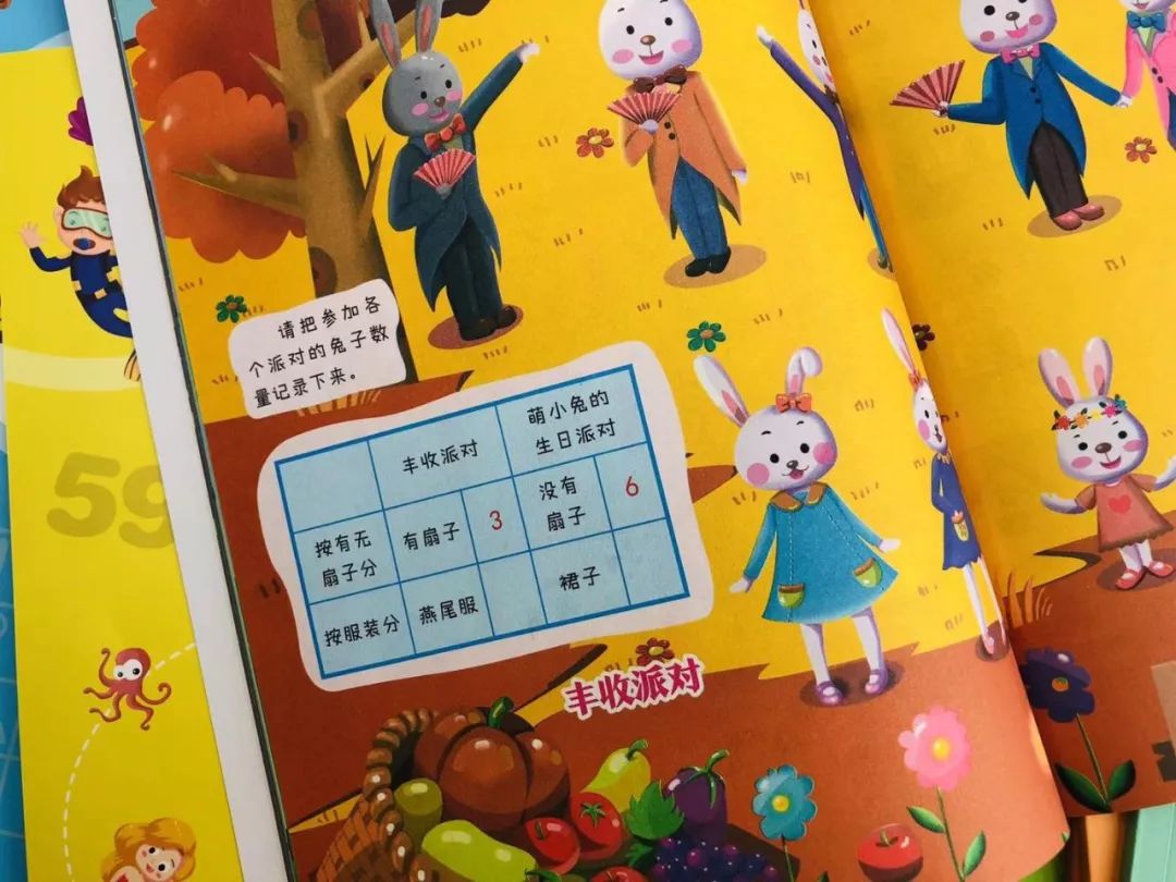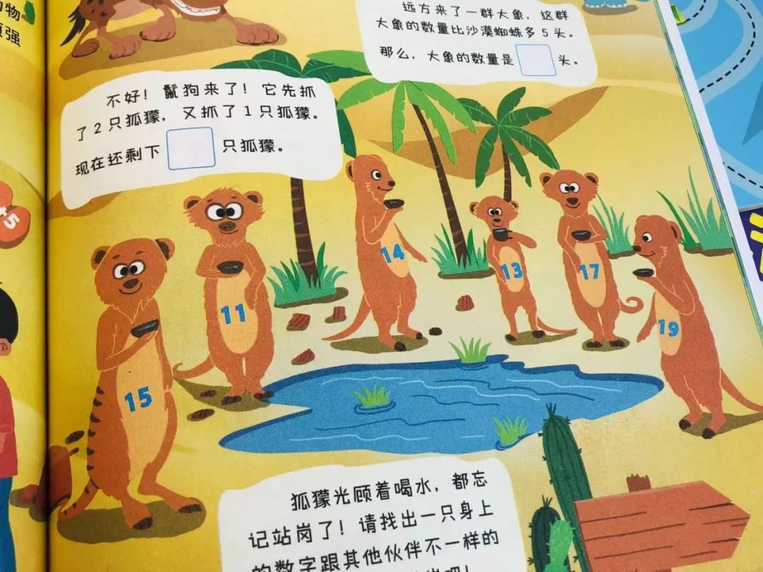 在《数字游戏· 提高本》里,考察了孩子20以内减法、相邻数、心算应用题等知识;