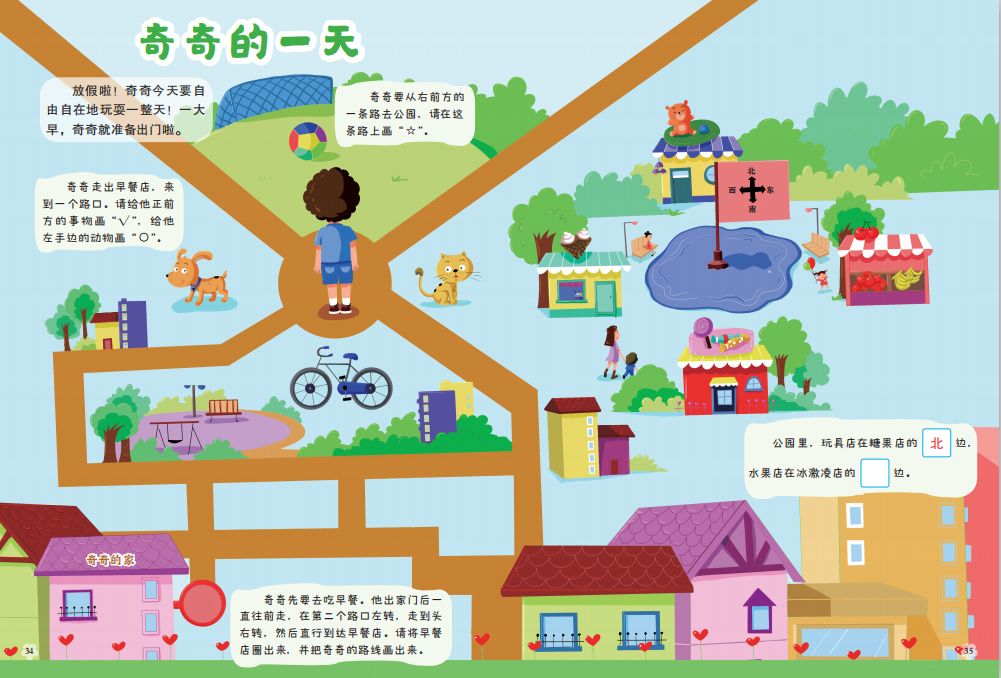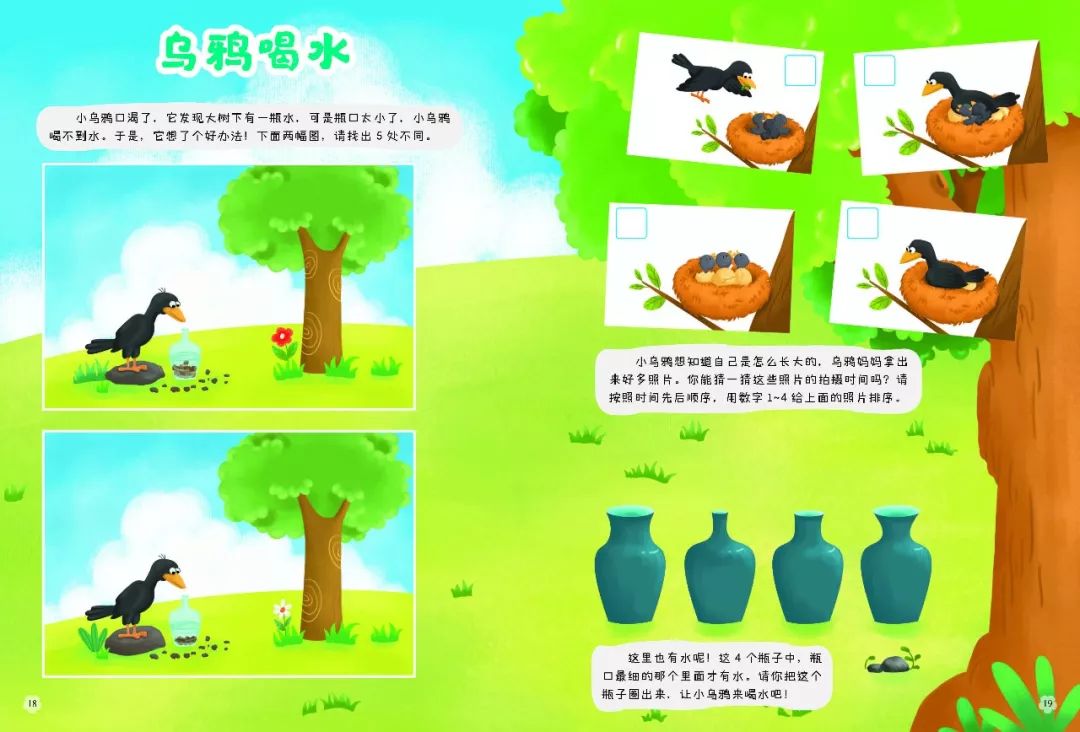 考察孩子观察力,学习找不同、常识判断、空间推理等;