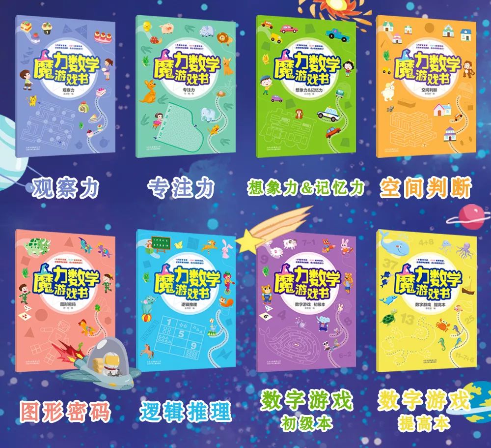 《空间判断》《图形密码》《逻辑推理》《数字游戏·初级本》《数字游戏·提高本》这5本,更侧重孩子数学推理能力的训练。