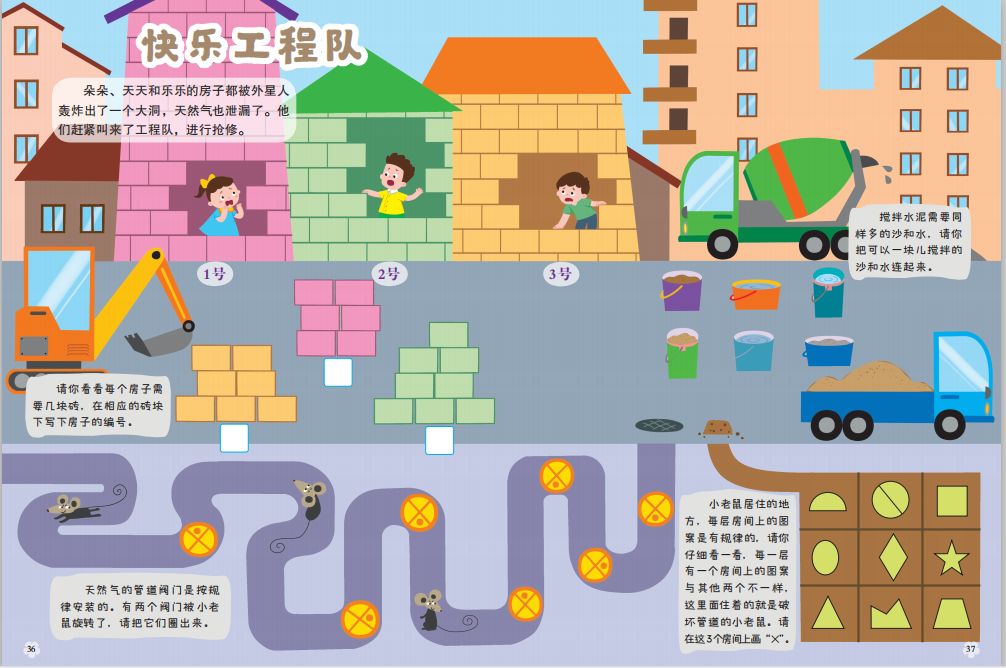 每一个场景,都是一个有趣的故事,随着故事情节的推进,孩子们需要解决不同的数学问题,这能充分调动孩子解决问题的积极性,也能让孩子获得更多成就感。